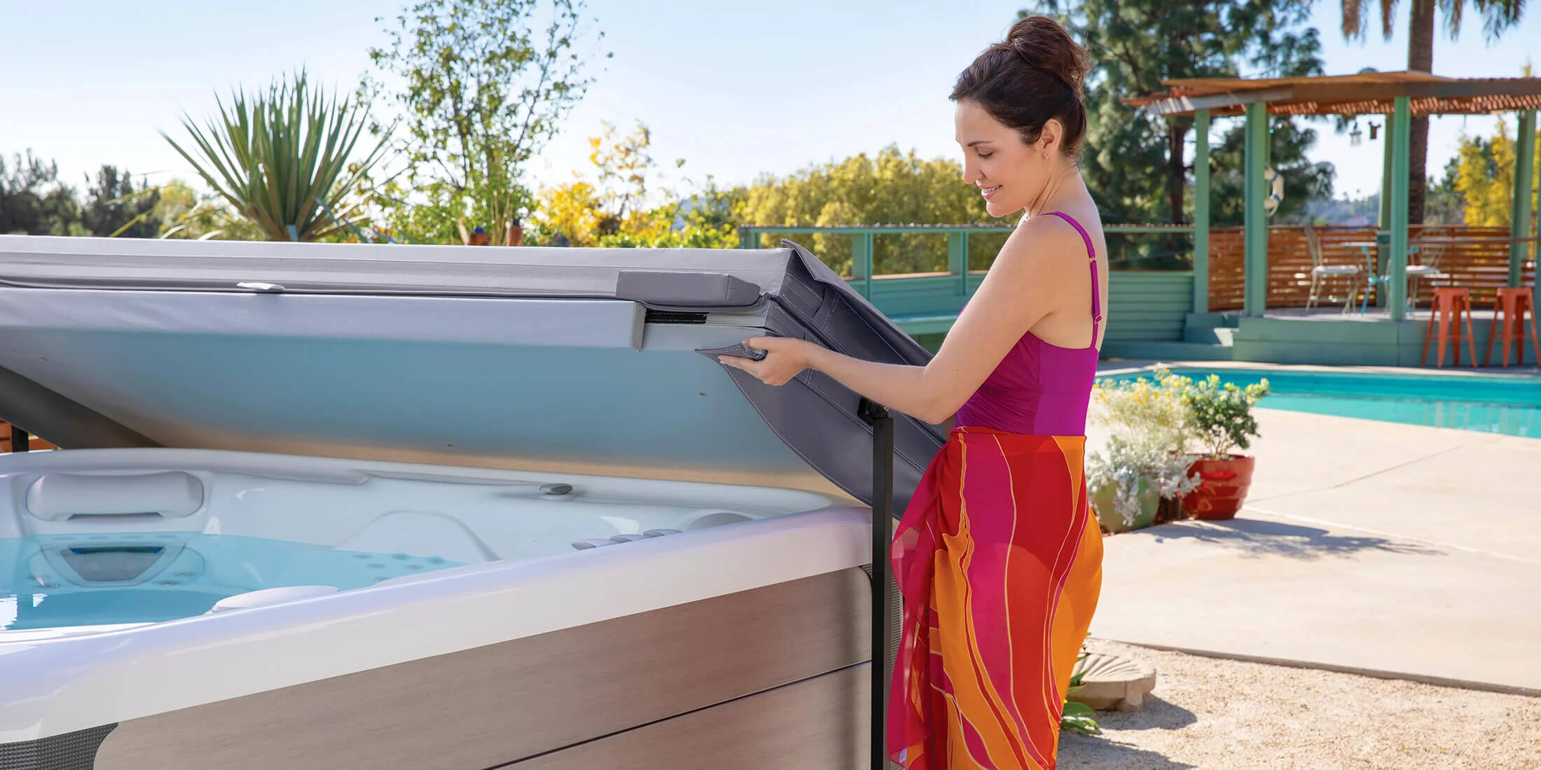 Hot Spring hot tub covers are outfitted with exclusive, sturdy brackets for strong support and easy installation of our exclusive cover lifters. Each cover is made with double-stitched vinyl for a durable hinge and extra strong padded handles for long lasting performance. There are 24 reinforced internal stress points in each spa cover, including aluminum reinforcement for increased strength and reduced weight. A hot tub cover lifter extends the life of your hot tub cover. Without a hot tub cover lifter removing, storing and replacing the cover between uses becomes a chore and your hot tub cover can become damaged when placed on the ground, patio or deck. Particularly with a larger hot tub, opening and closing any hot tub cover without a hot tub cover lifter can be a two-person job. With a spa cover lifter, one person can easily open and close the cover, keeping it off the ground. With a Hot Spring cover lifter, you are more likely to use your spa because it will be so much easier to open and close the cover.
